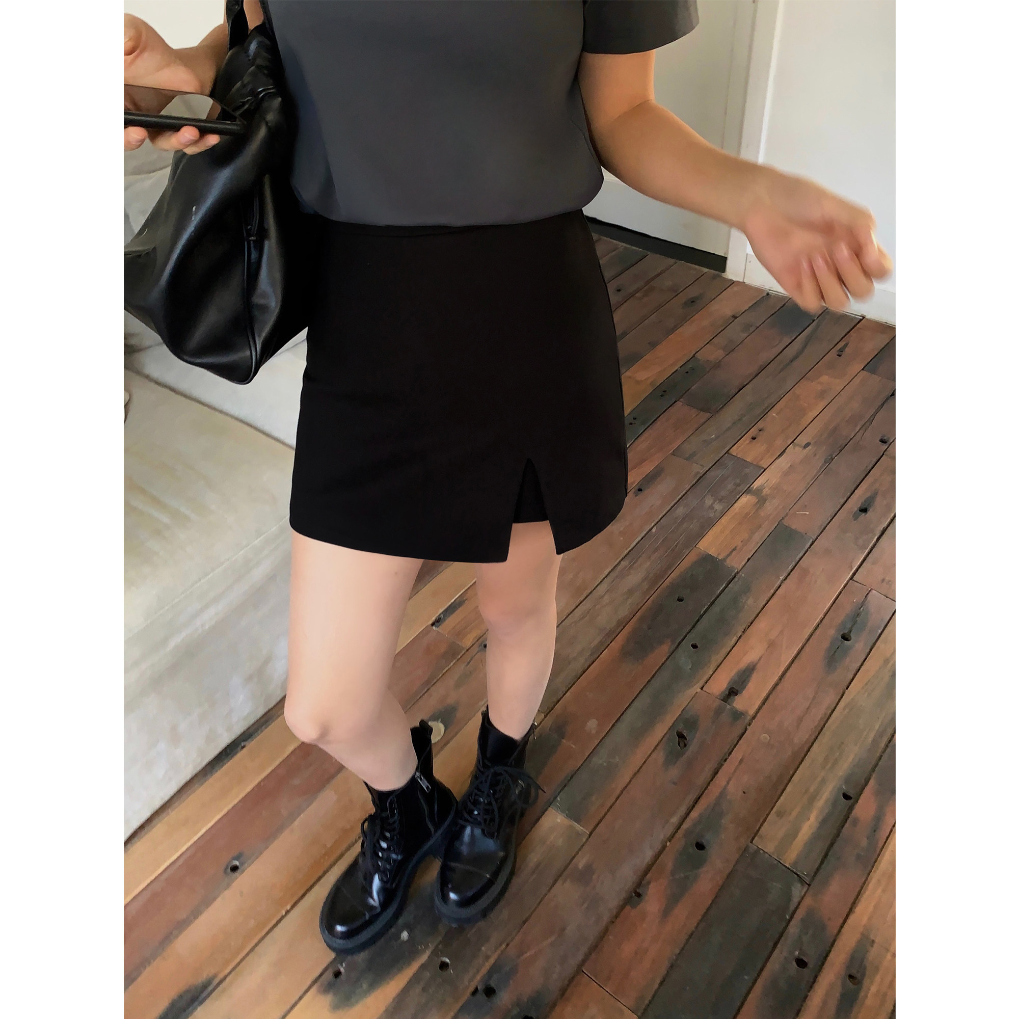 eihey black pinstripe slit skirt anti-light low-waisted skirt women's mini suit hip skirt