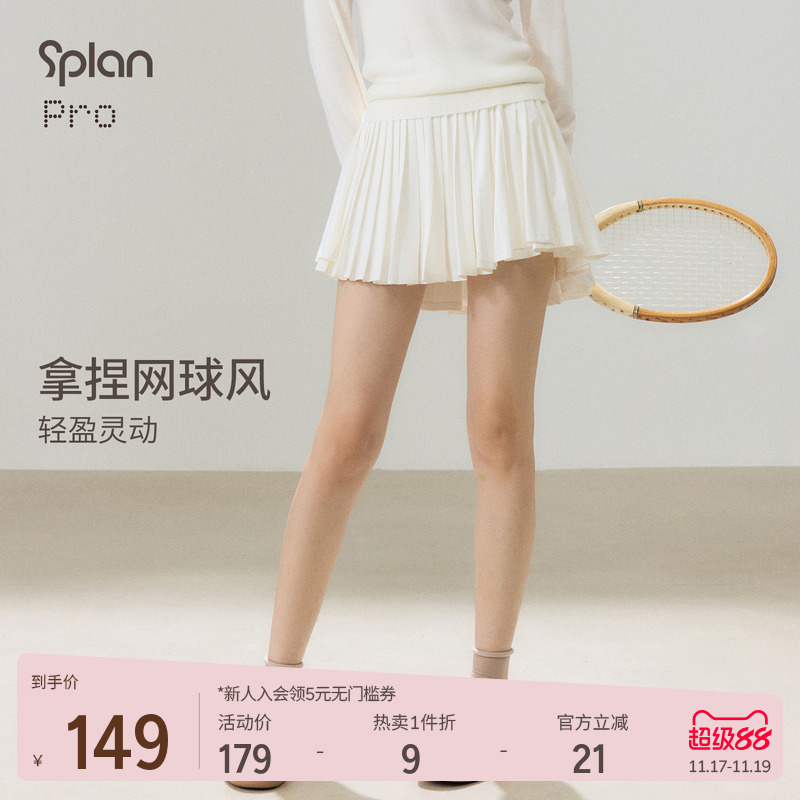 SPLAN beautiful tennis skirt autumn and winter drape A-line skirt white sports pleated skirt women's badminton suit