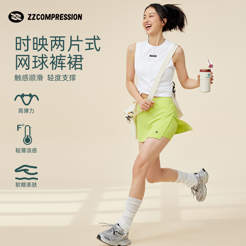 ZZCOMPRESSION tennis skirt fashion two-piece leggings anti-light badminton sports high elasticity versatile