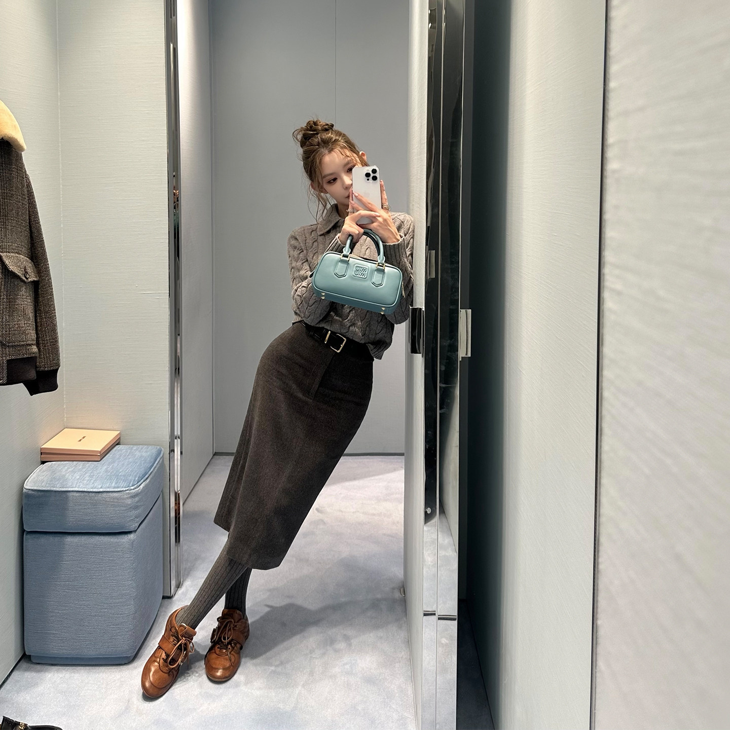 Khaki straight skirt women's spring, autumn and winter high-waisted slit hip A-line skirt mid-length cashmere woolen skirt