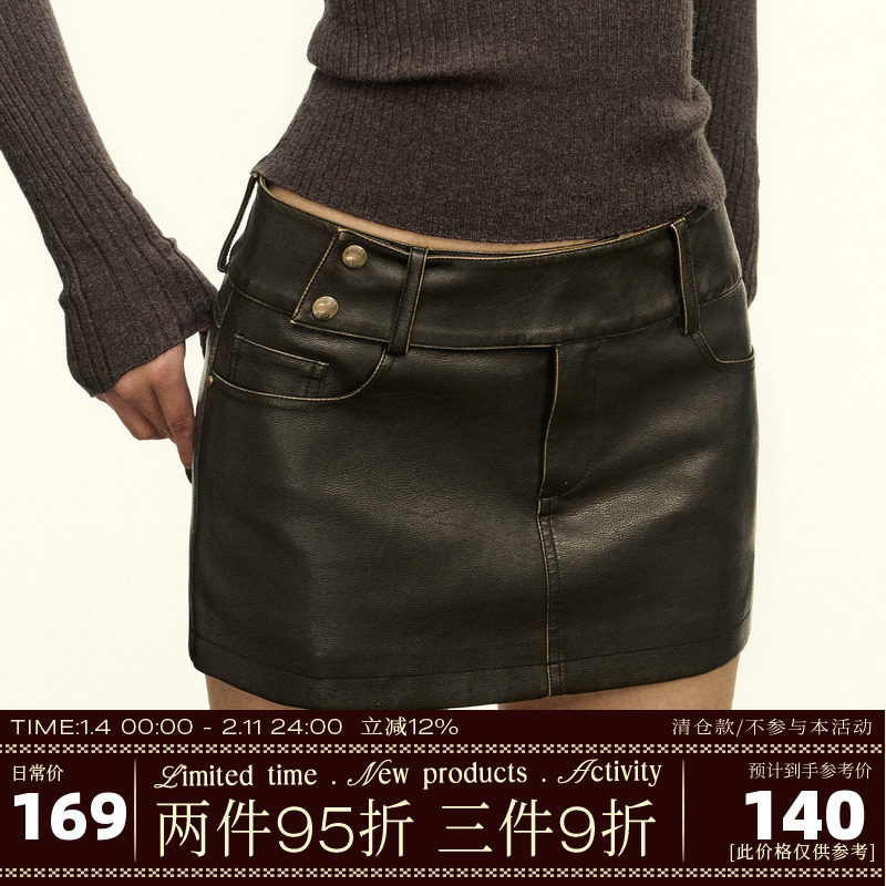 Ariseism retro design skirt women's short skirt 2025 autumn new hot girl low-waisted hip leather skirt