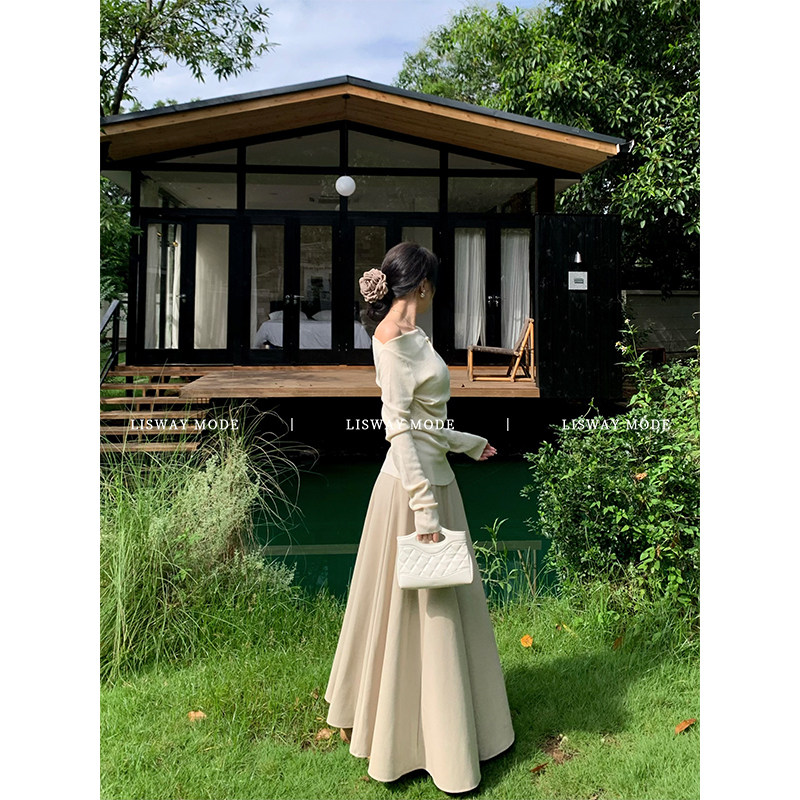 LISWAYMODE [wide collar] skirt women's winter thickened fleece long heavy work simple woolen umbrella skirt