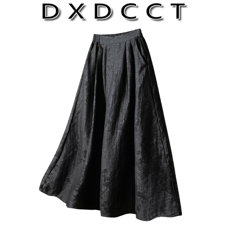 Jacquard turtle crack fragrant cloud yarn! Structured A-line elasticated waist silk skirt long skirt black
