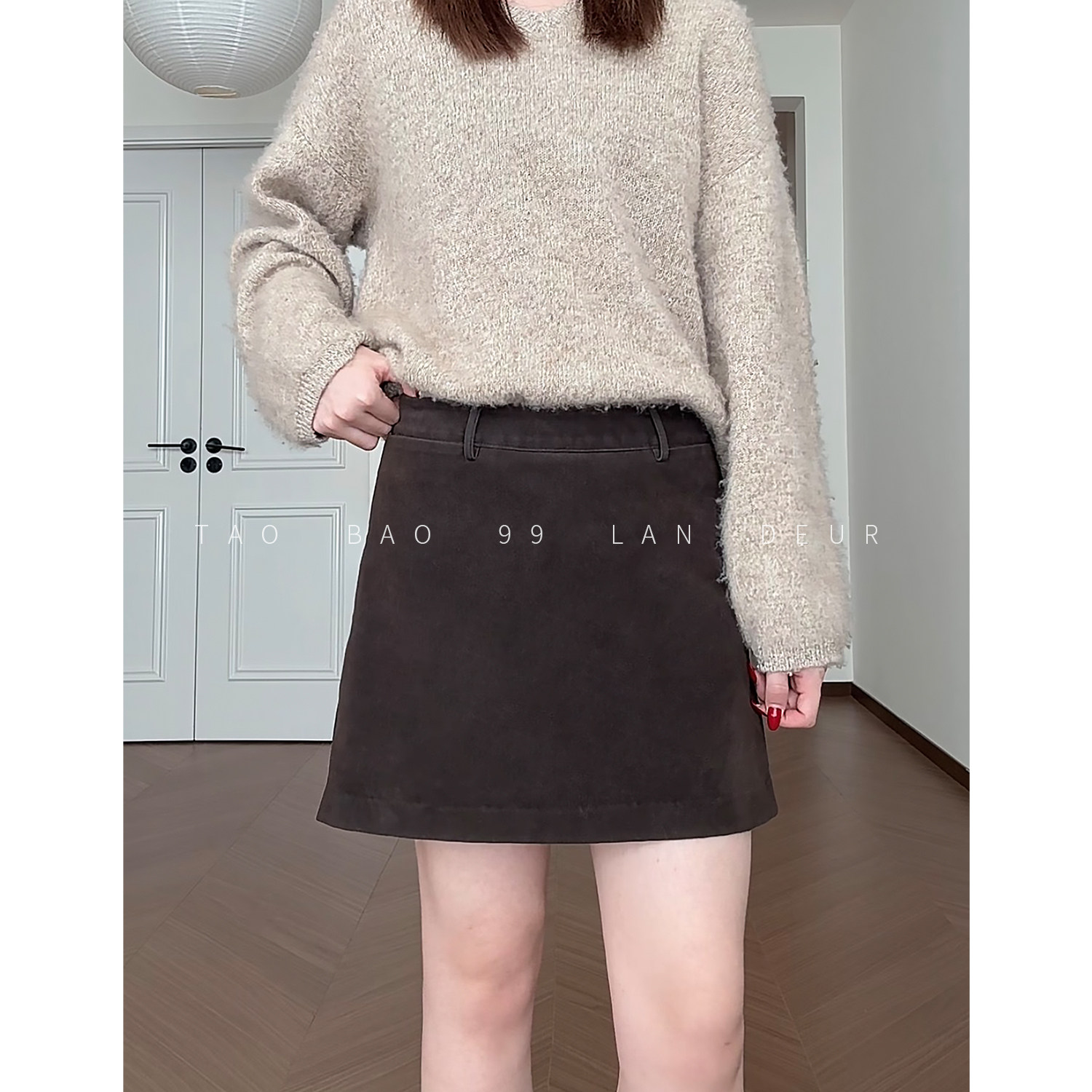 LAN DEUR [Light Clouds] slimming temperament, versatile and simple pre-autumn retro short suede skirt