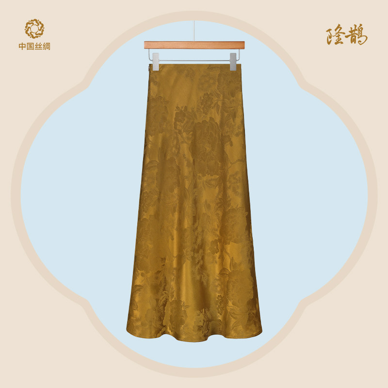 Chinese silk magpie "golden bottom peony jacquard" fragrant cloud gauze skirt new Chinese style skirt national style slimming