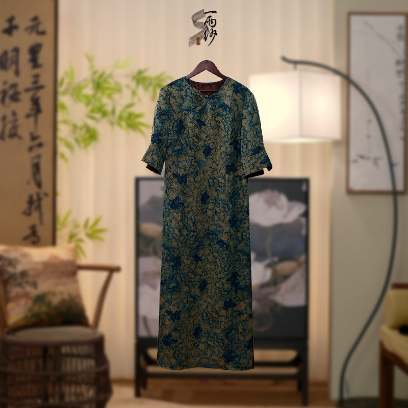 Yunshu original interwoven jacquard fragrant cloud yarn new Chinese improved cheongsam dress A-line skirt long robe summer