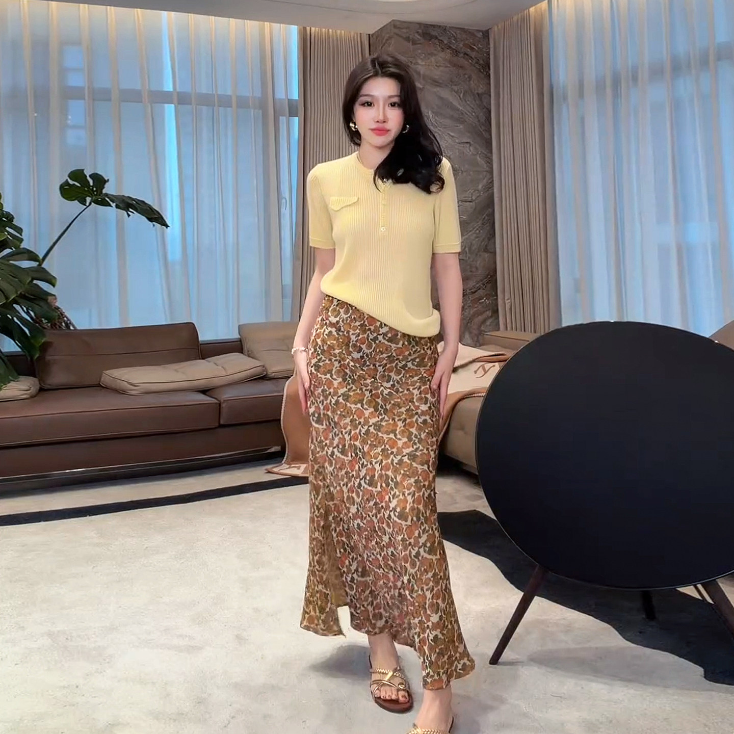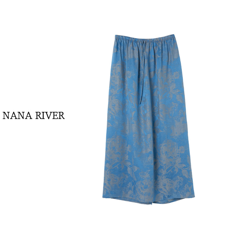 ME [Cupro Silk Summer Flower Mermaid Skirt] Draped Art Print High Waist Slimming Fashion Skirt MEHS0940