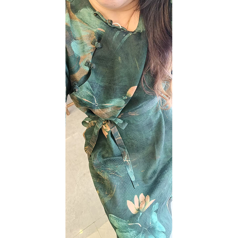 Pre-nine silkworms 100 mulberry silk 26 mumi flower Luo green water lily five blessings buckle robe dress