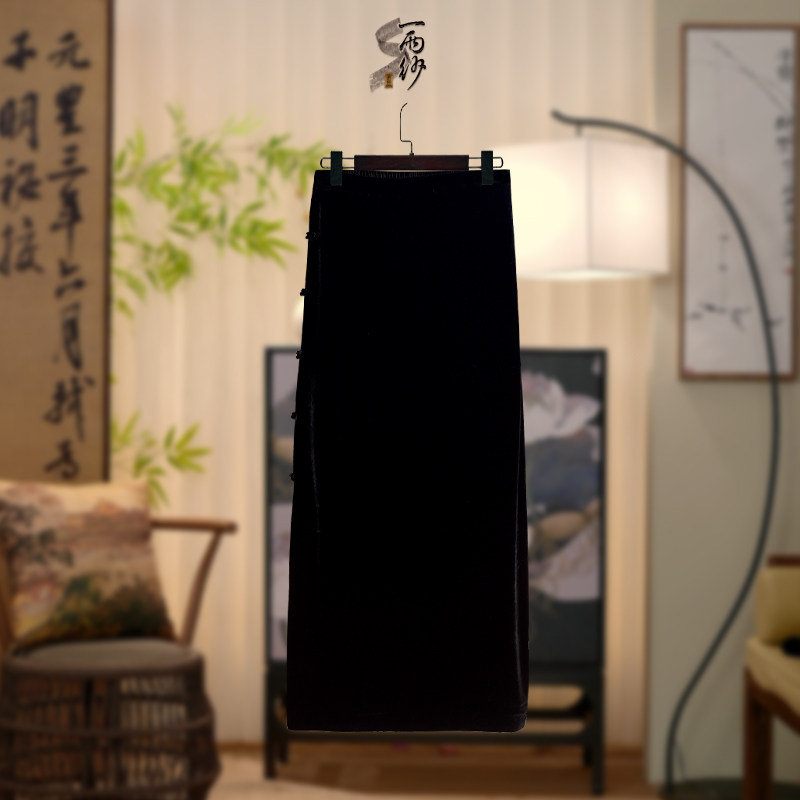 [Black velvet one-step skirt] 258576 Shen Ha Hassan silk velvet skirt new Chinese style