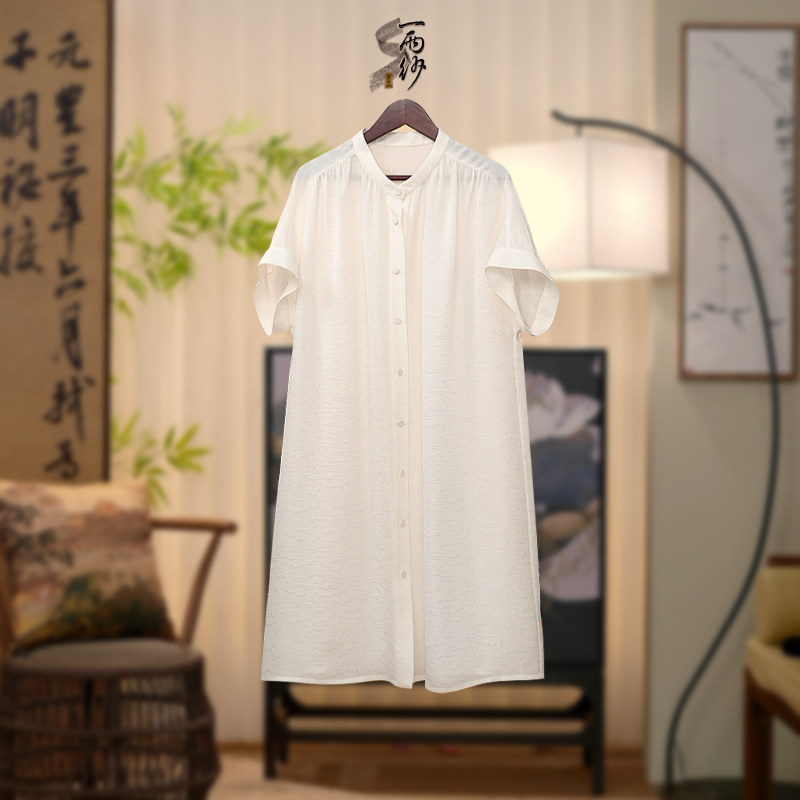 [Double palace cocoon crown crepe ● shirt] 253007 Shen Ha Hassan silk white short dress new Chinese style 40