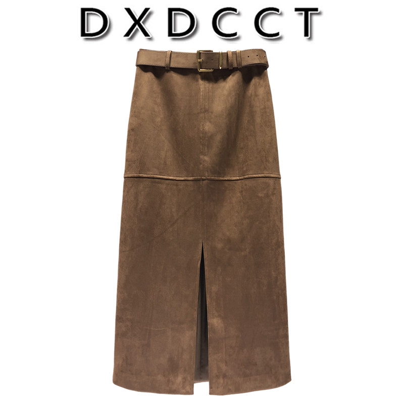 【Spot】Slit cowhide fleece skirt women's 2025 autumn and winter new design niche European goods show slender long skirt