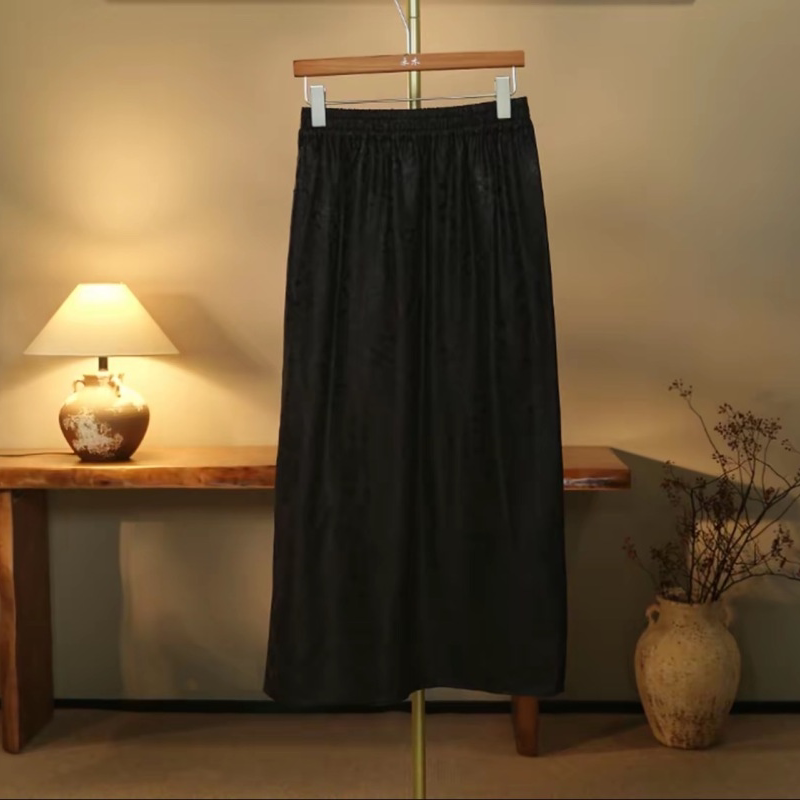 【Rodriguez】Double-sided wearing a new Chinese fragrant cloud yarn twisted jacquard elastic waist skirt with a slit old money style