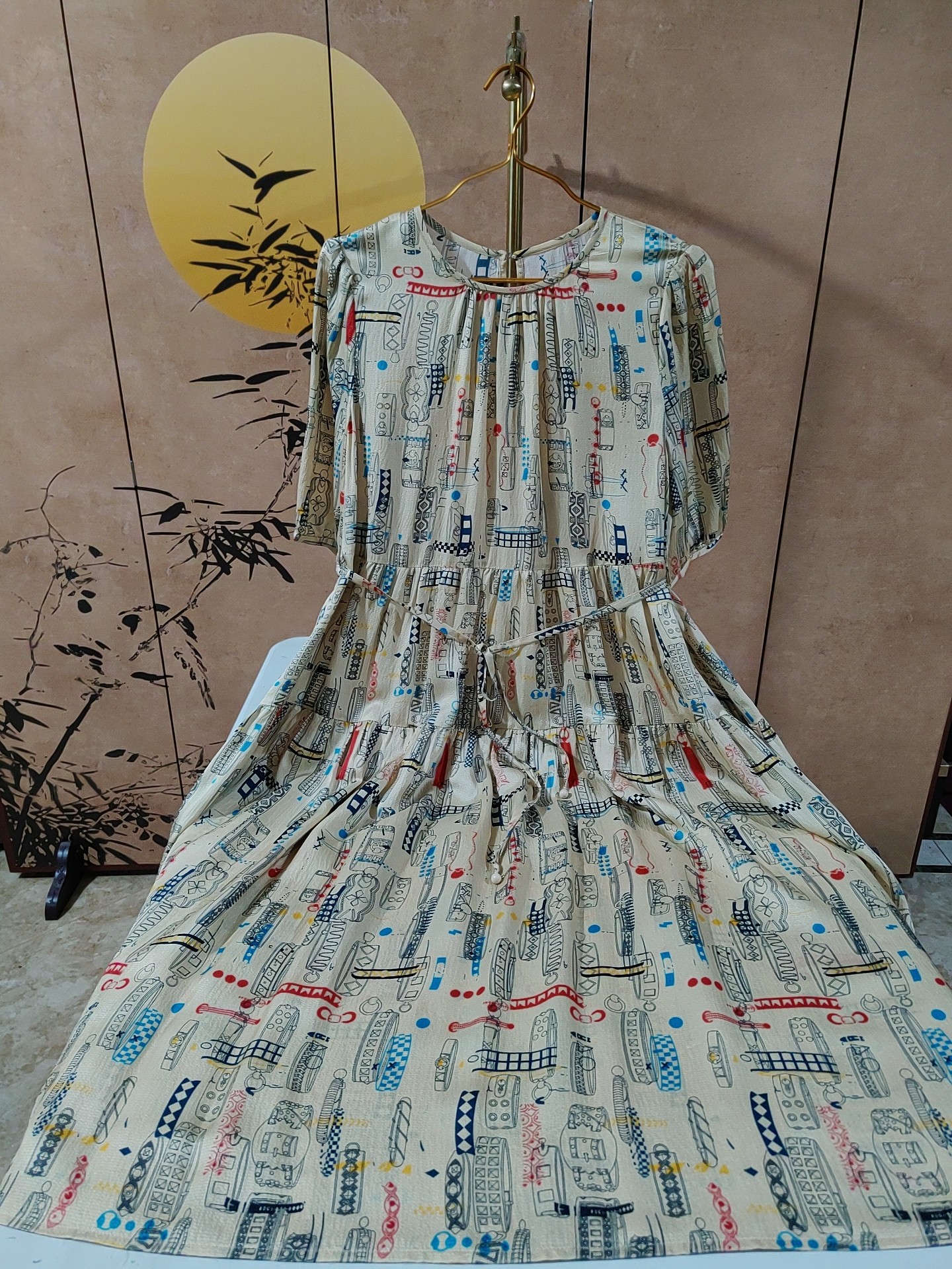 A254 100% mulberry silk heavy silk print ghost crepe dress summer Korean fashion robe loose