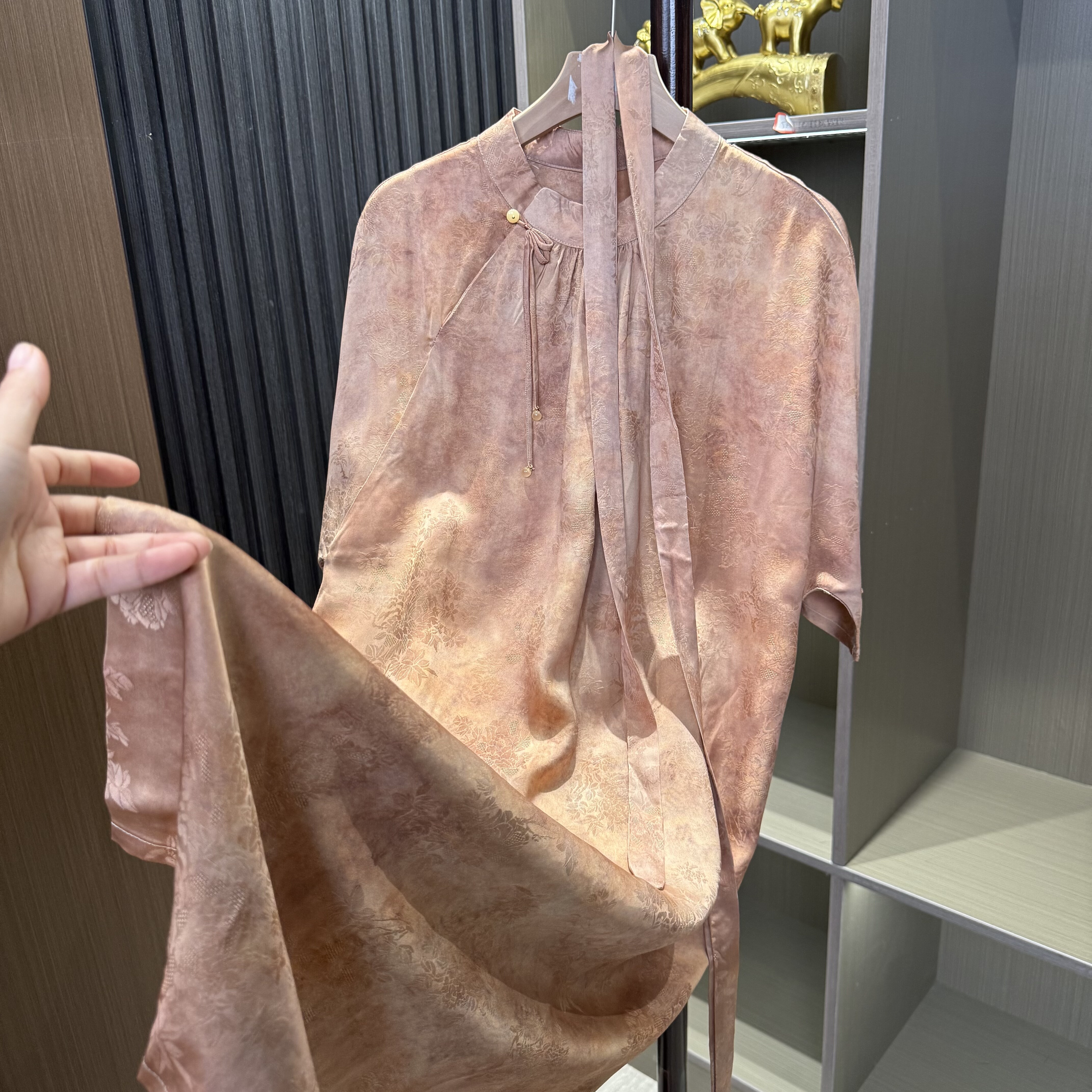 2025 Spring New Chinese Design Tencel Jacquard Satin Ties Pleated Improved Cheongsam Dress