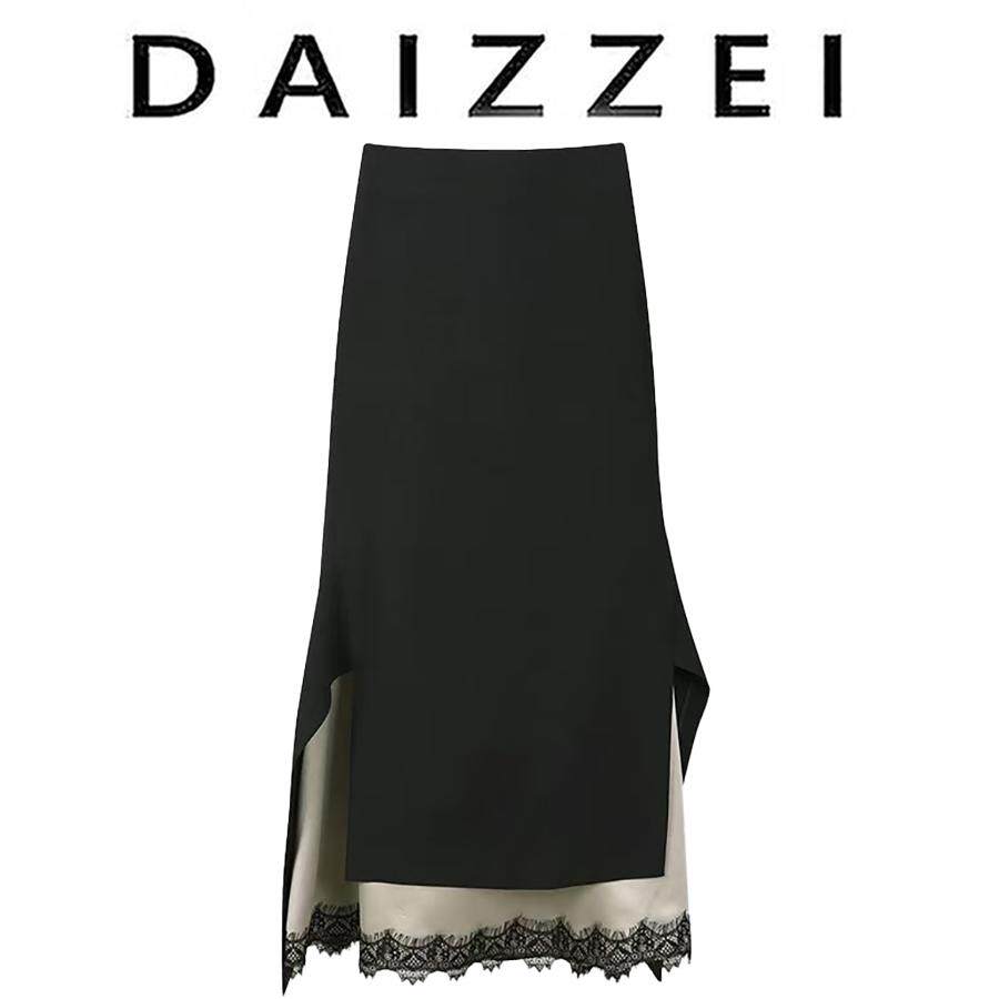 DAIZZEI~ French black skirt celebrity temperament high-end sense 2025 new fake two-piece design long skirt