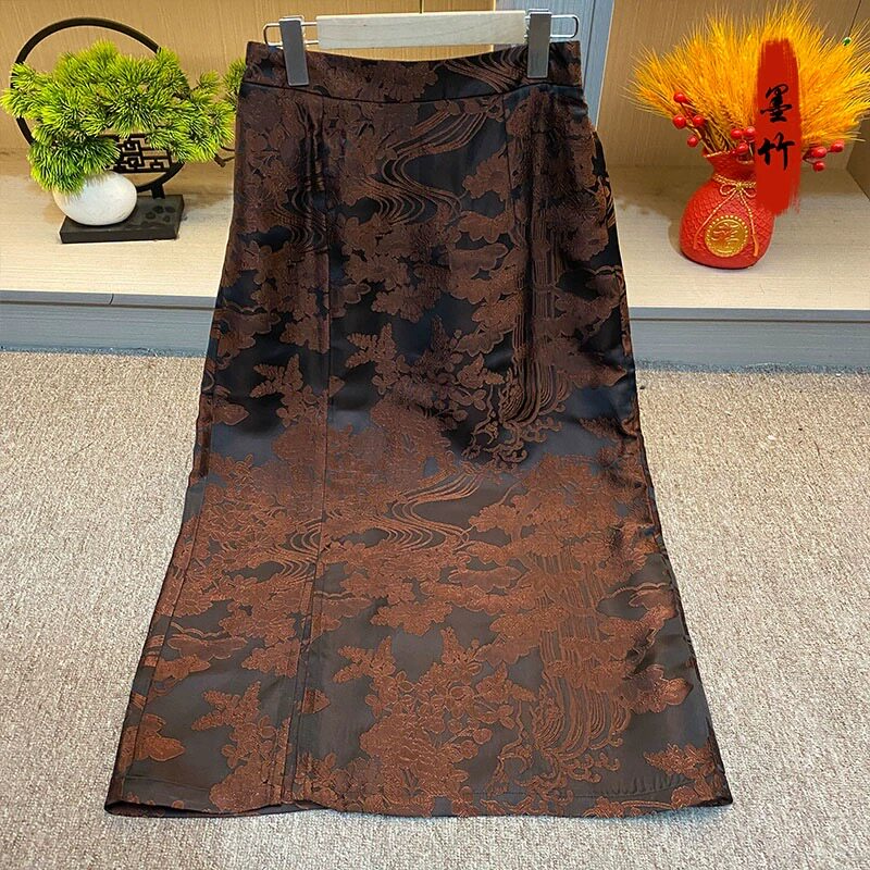 【Flying Waterfall】Heavy new Chinese style jacquard slit skirt national tide old money style