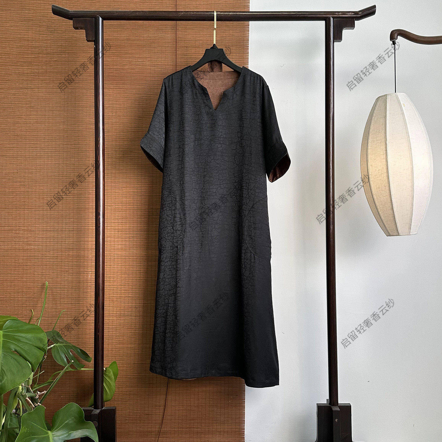 【253378】Ink pattern ice crack new Chinese style black turtle dress
