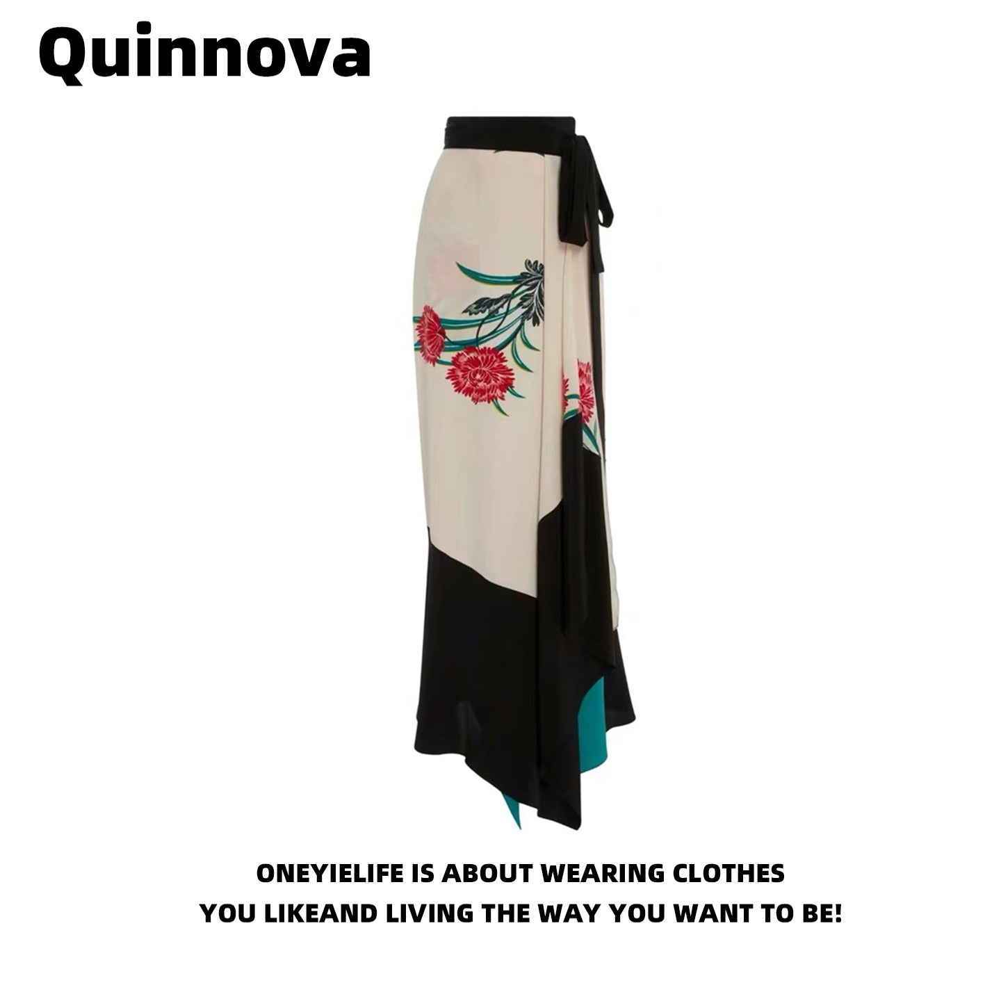 Quinnova temperament high-end printed skirt women's spring high-waisted slimming French beautiful midi skirt