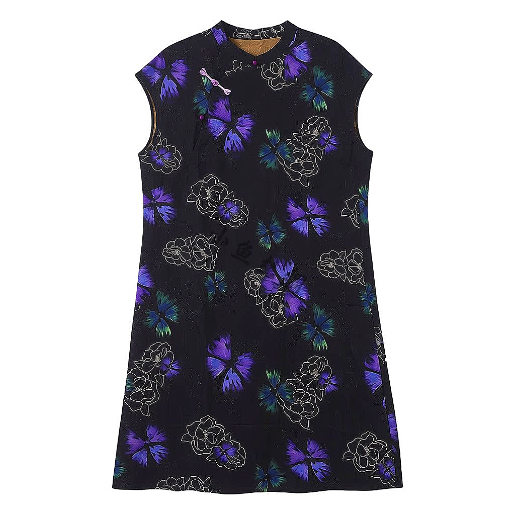 6102-New Chinese butterfly dress women's sleeveless stand-up collar black fragrant cloud yarn mid-length