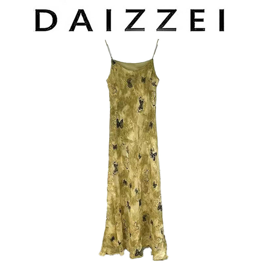 DAIZZEI~ drape floral camisole dress women's 2025 summer new slim slimming over the knee chiffon skirt long skirt