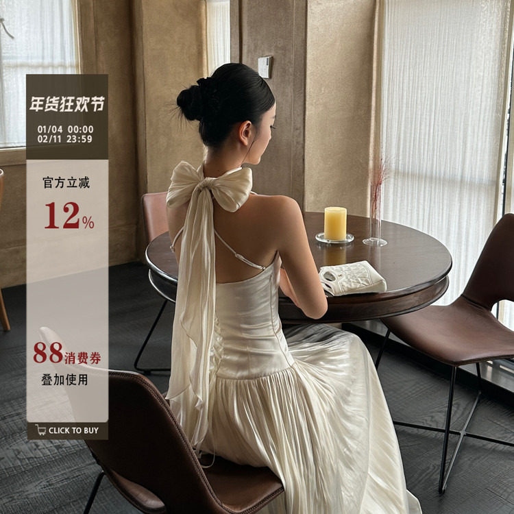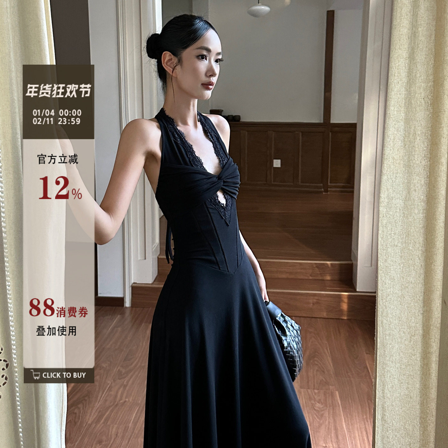 VENUIE French halterneck dress can be worn daily for engagement evening birthday small light dress skirt temperament beautiful long skirt