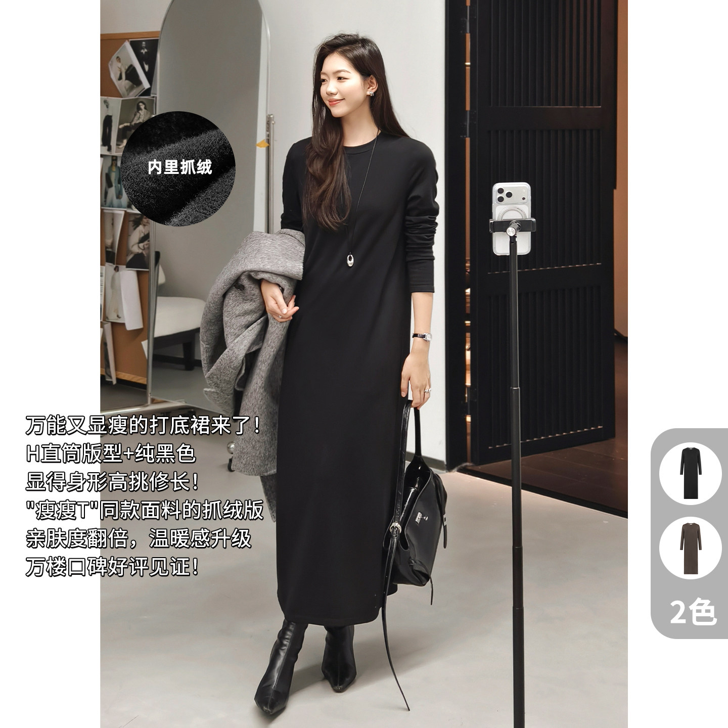 MEIYANG Paper Man Dress Thickened Thread Pull Frame Fleece Warm T-Shirt Little Black Dress [Medium]