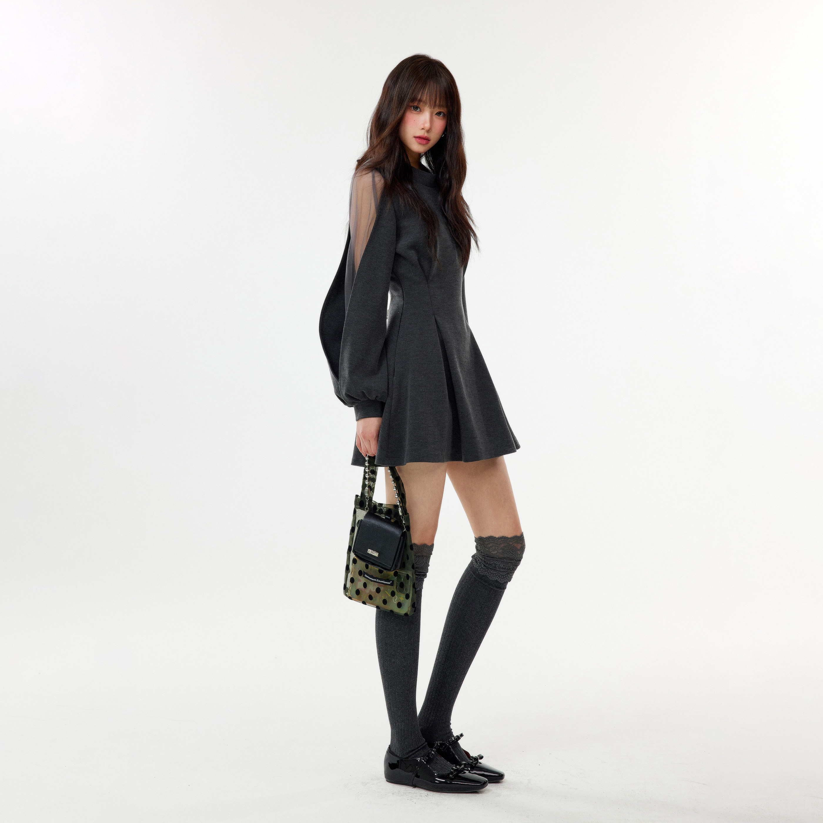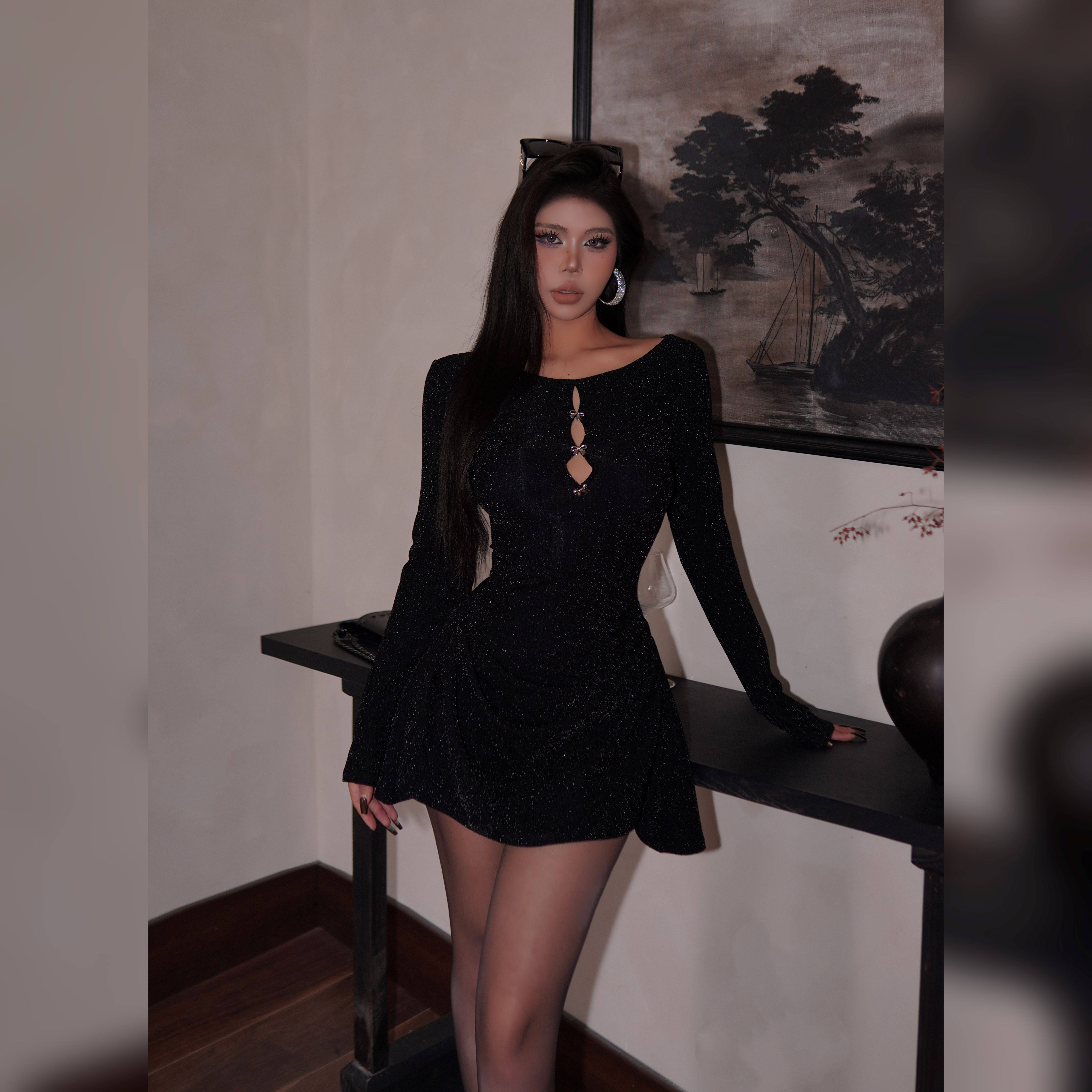 MuuRos Autumn French Long Sleeve Premium Daughter Waist Temperament Slim Dress Short Skirt Women's Short Skirt