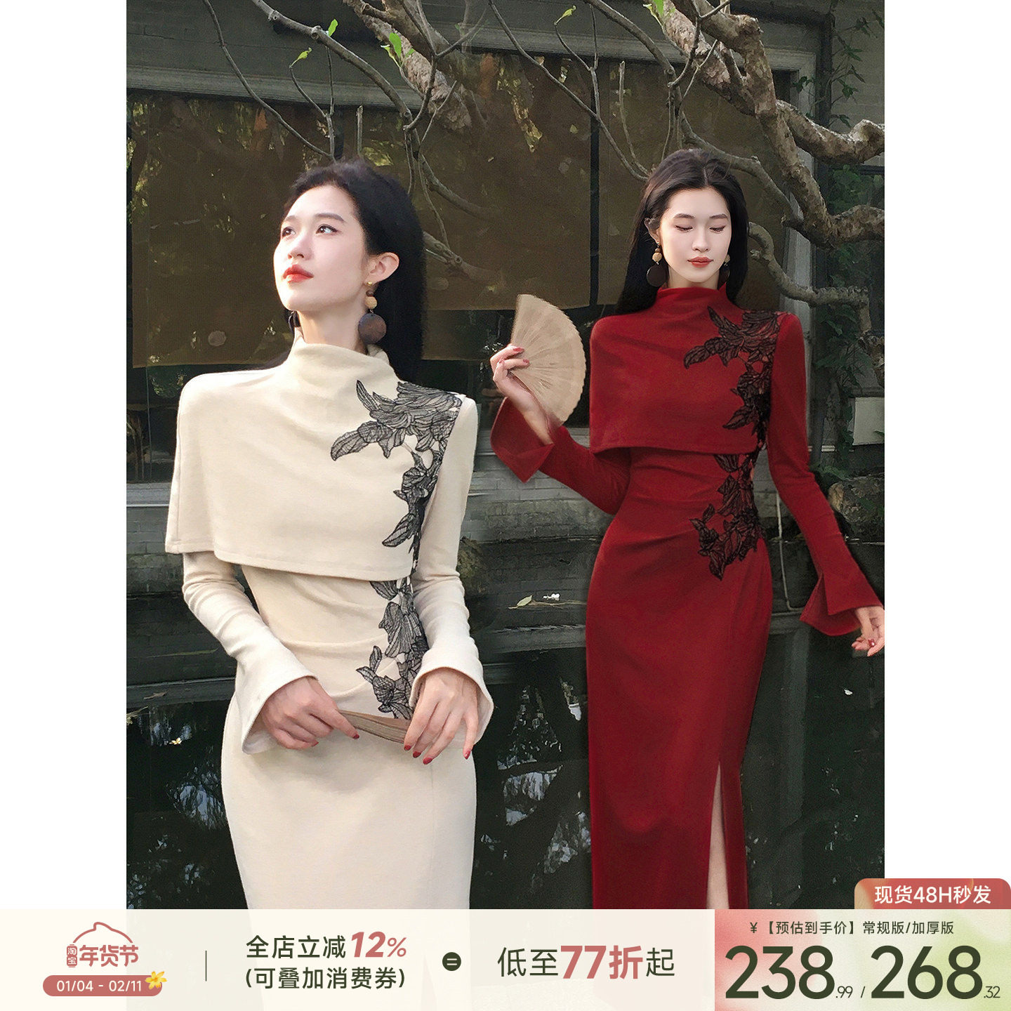 Ling Qian Qiu Feng Xu New Chinese cheongsam suit women's winter clothes thickened New Year's robe long-sleeved knitted dress