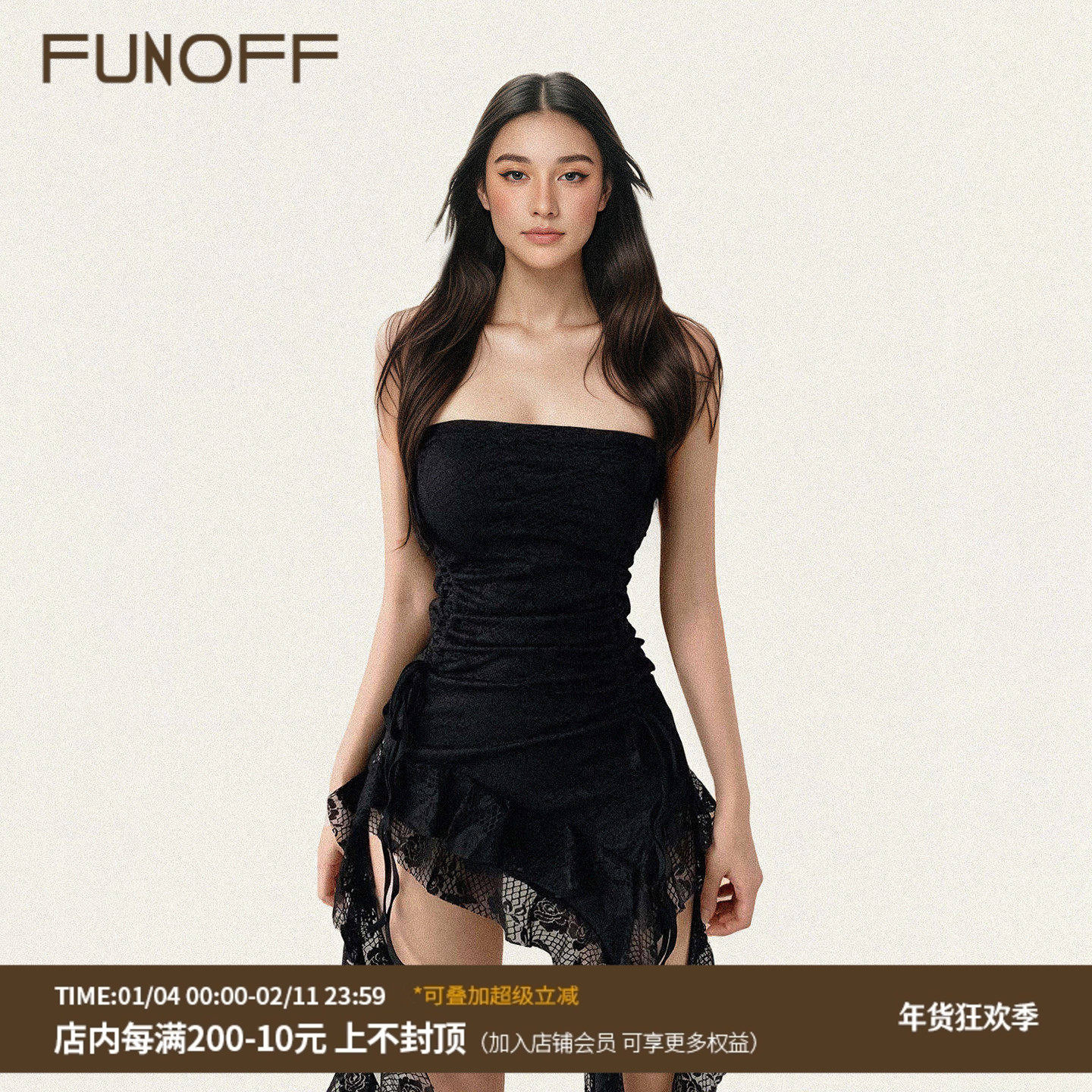 FUNOFF Vintage Black Lace Irregular Bandeau Layered Vest Sexy Waist Streamer Jumpsuit Miniskirt