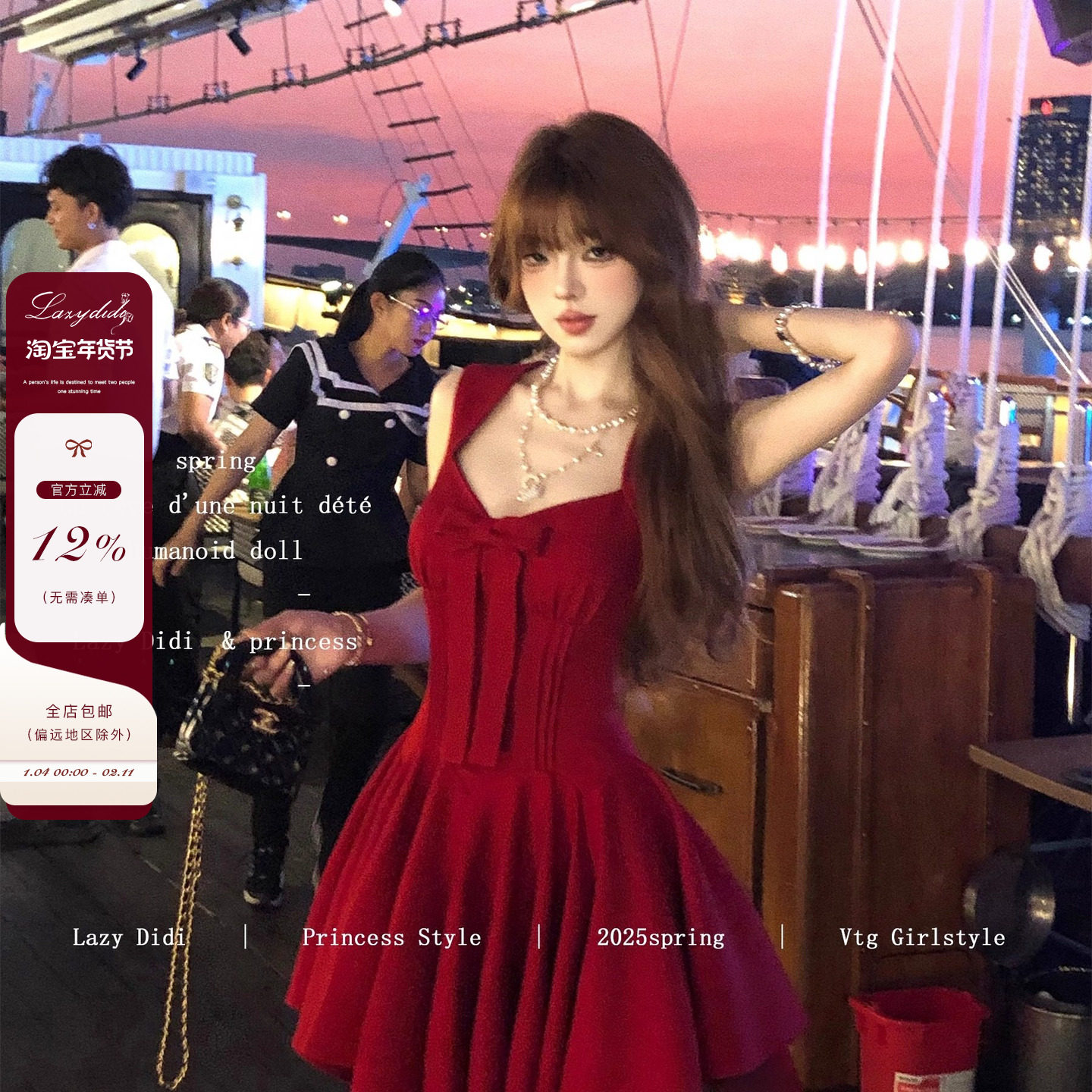 Red dress women's French engagement dress can be worn daily with a high-end daughter sense miu series New Year's outfit autumn and winter