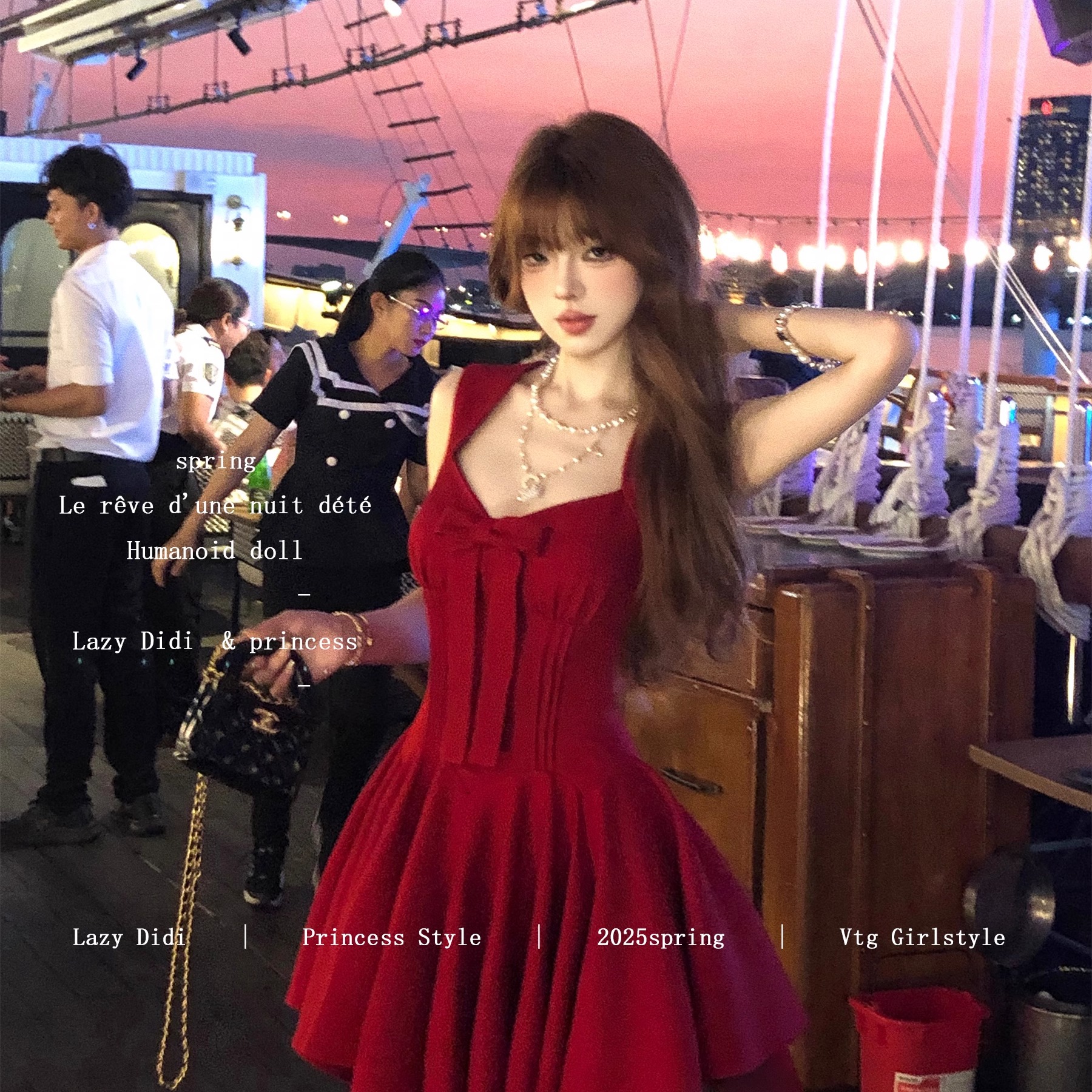 Lazy Didi rose life four-meter skirt princess dress bow feeling sleeveless waist dress