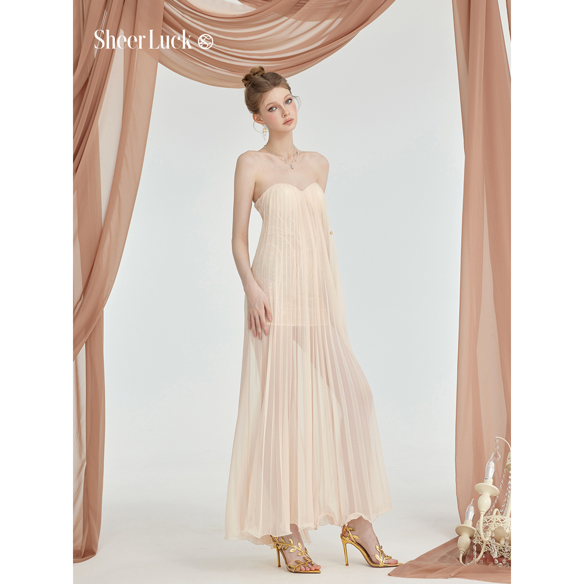 Sheer Luck Thea bandeau mesh dress women's summer new sexy backless high-end dress