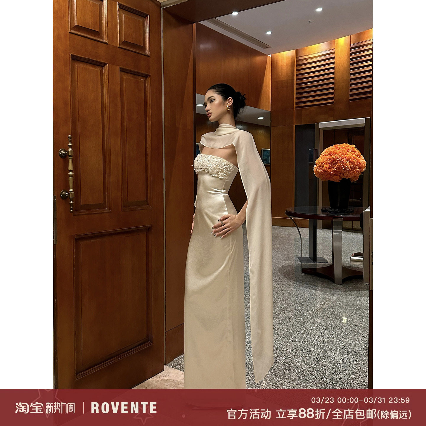 rovente streamer feast white bandeau dress female slim slim shawl sequin celebrity dress maxi dress
