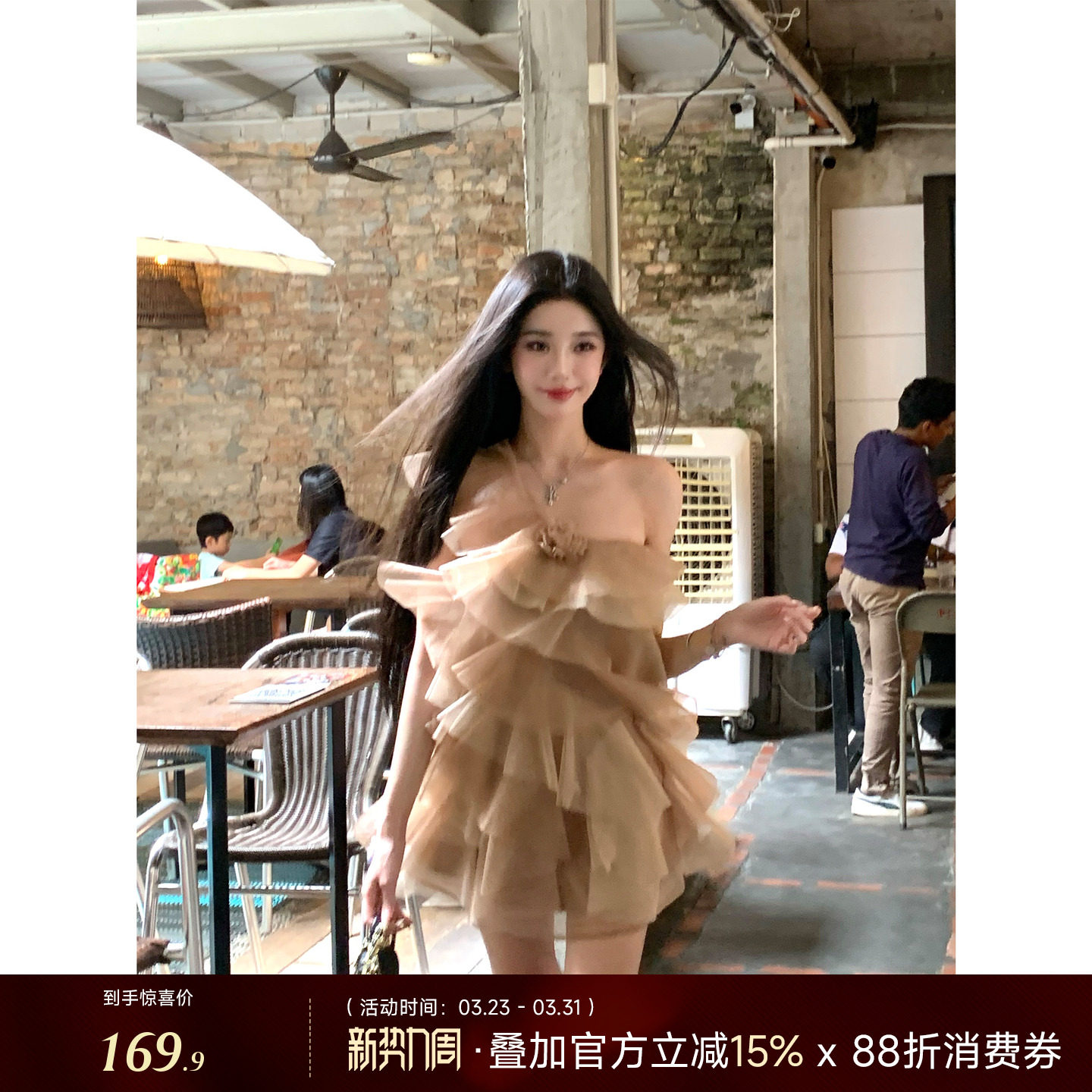 Barb Chill "Mist Veil Milk Apricot" Seaside Resort Dress, Cake Skirt, Women's Summer Princess Dress, Birthday Dress