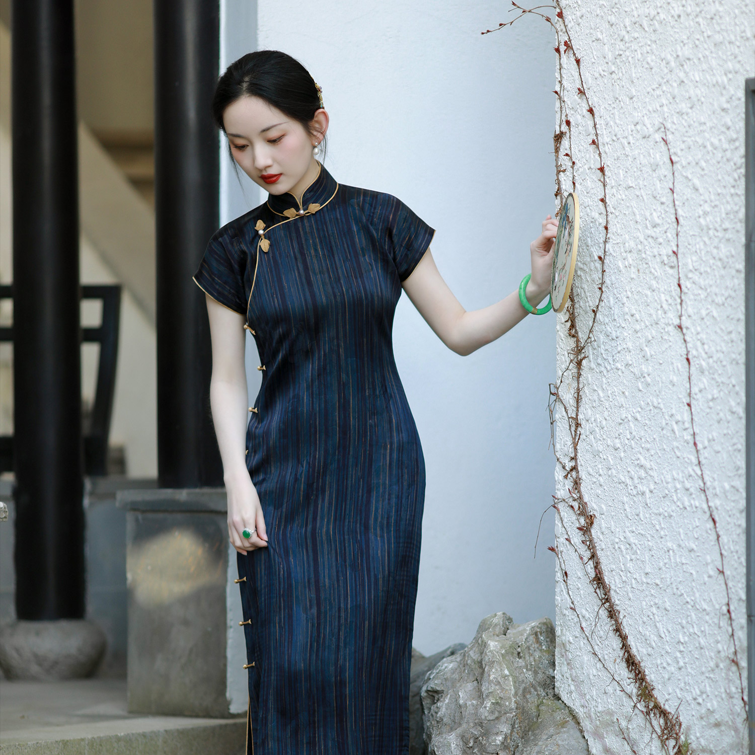 Quiet moon Jiang Lan丨A city of wind catkins丨Summer retro Republic of China style coil buckle fully open placket without saving fragrant cloud gauze cheongsam skirt
