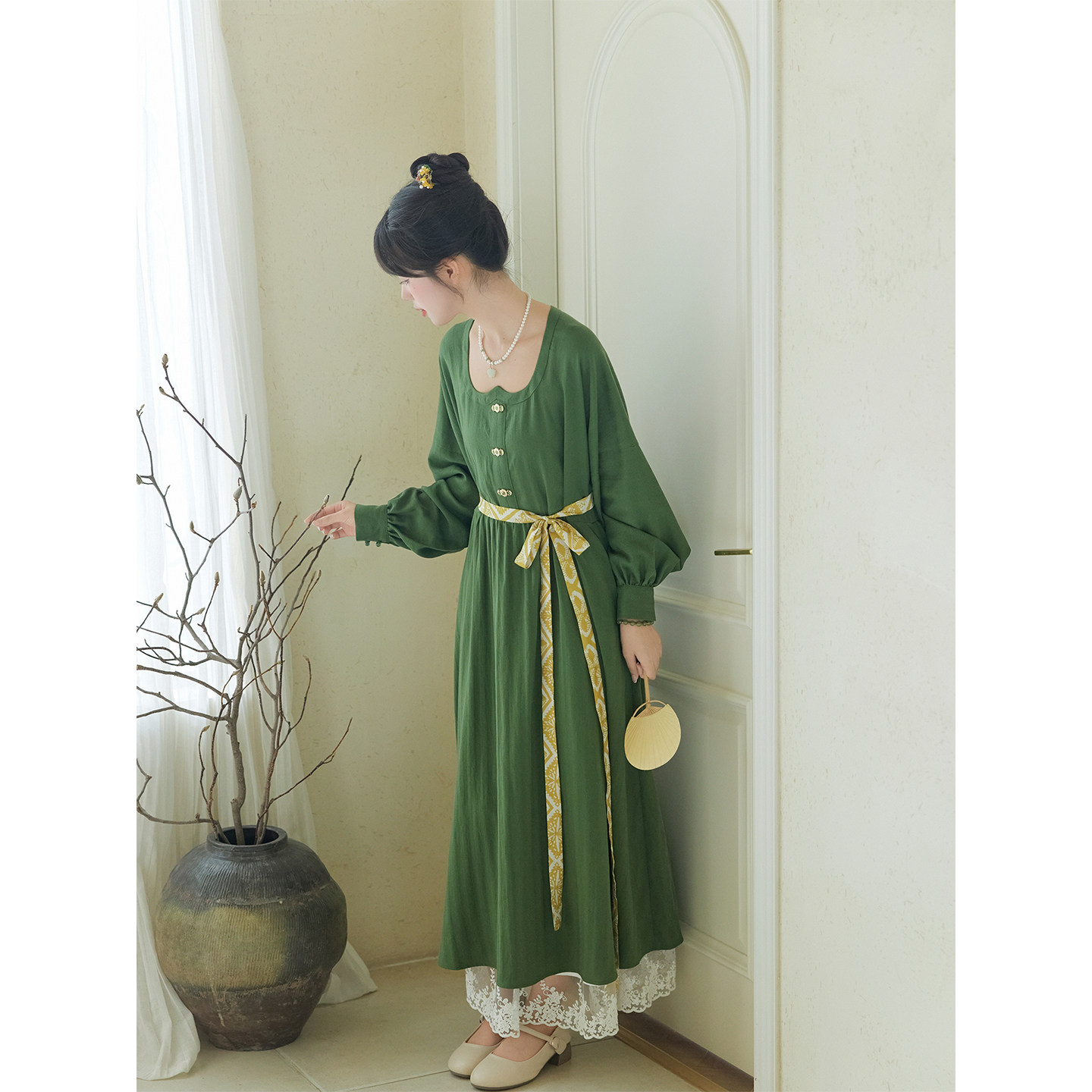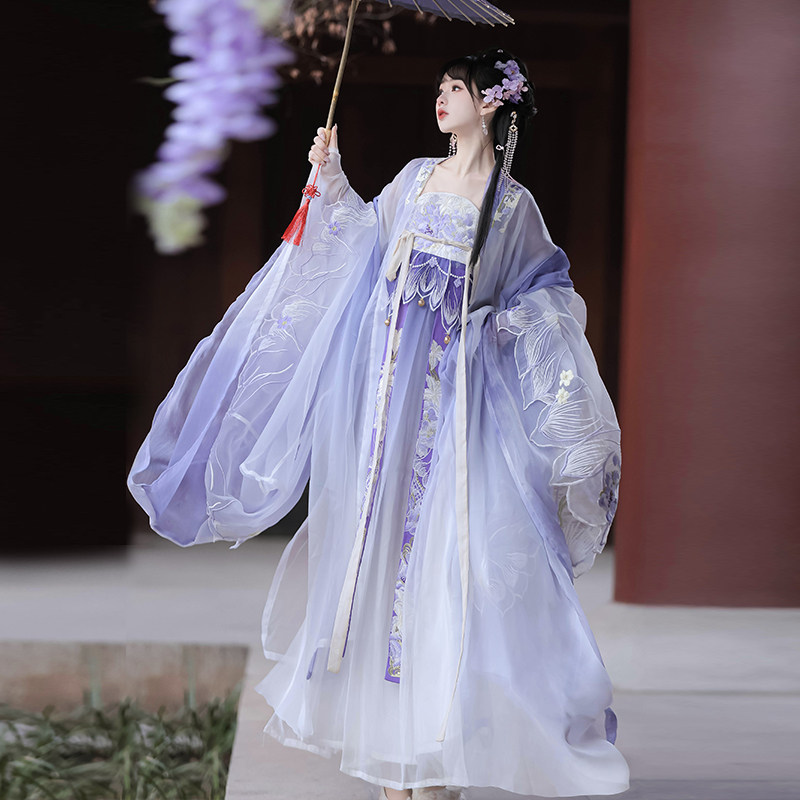 Flower God Ji Hanfu Heavy Industry Embroidered Long-sleeved Shirt One-Piece Vertical Tailoring Hezi Chest-length Skirt Spring and Summer New Original Fanghua