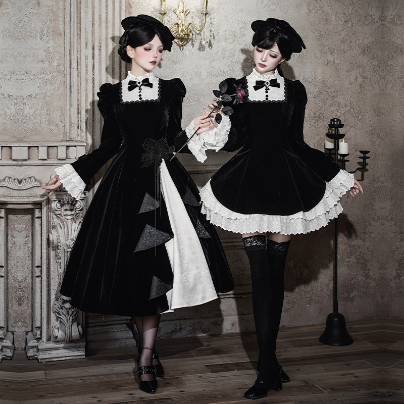 ANGELNUMBER555 2025 Fall/Winter New Velvet Waist Black Dress Korean Niche