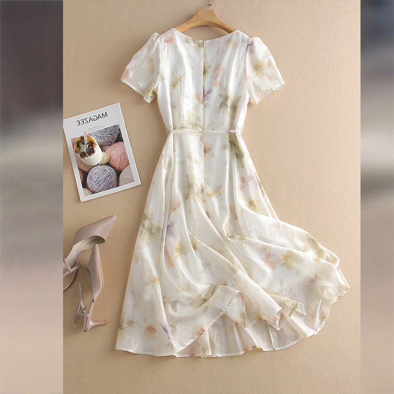 French printed chiffon dress women's 2025 new summer temperament celebrity high-end goddess fan high-end skirt
