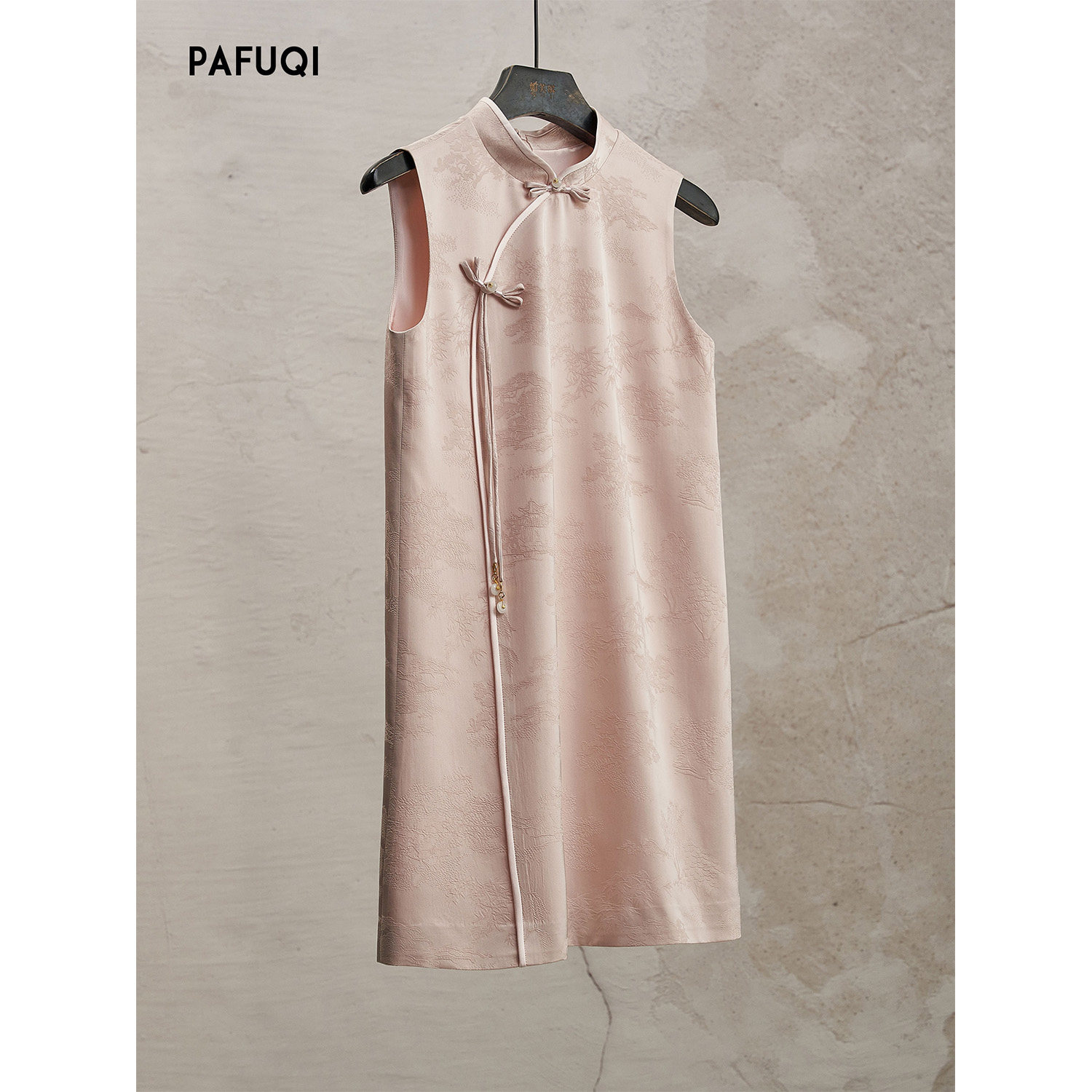 Improved new Chinese cheongsam dress, buckle stand-up collar, jacquard pink sundress, light national style women's clothing 2026 new model