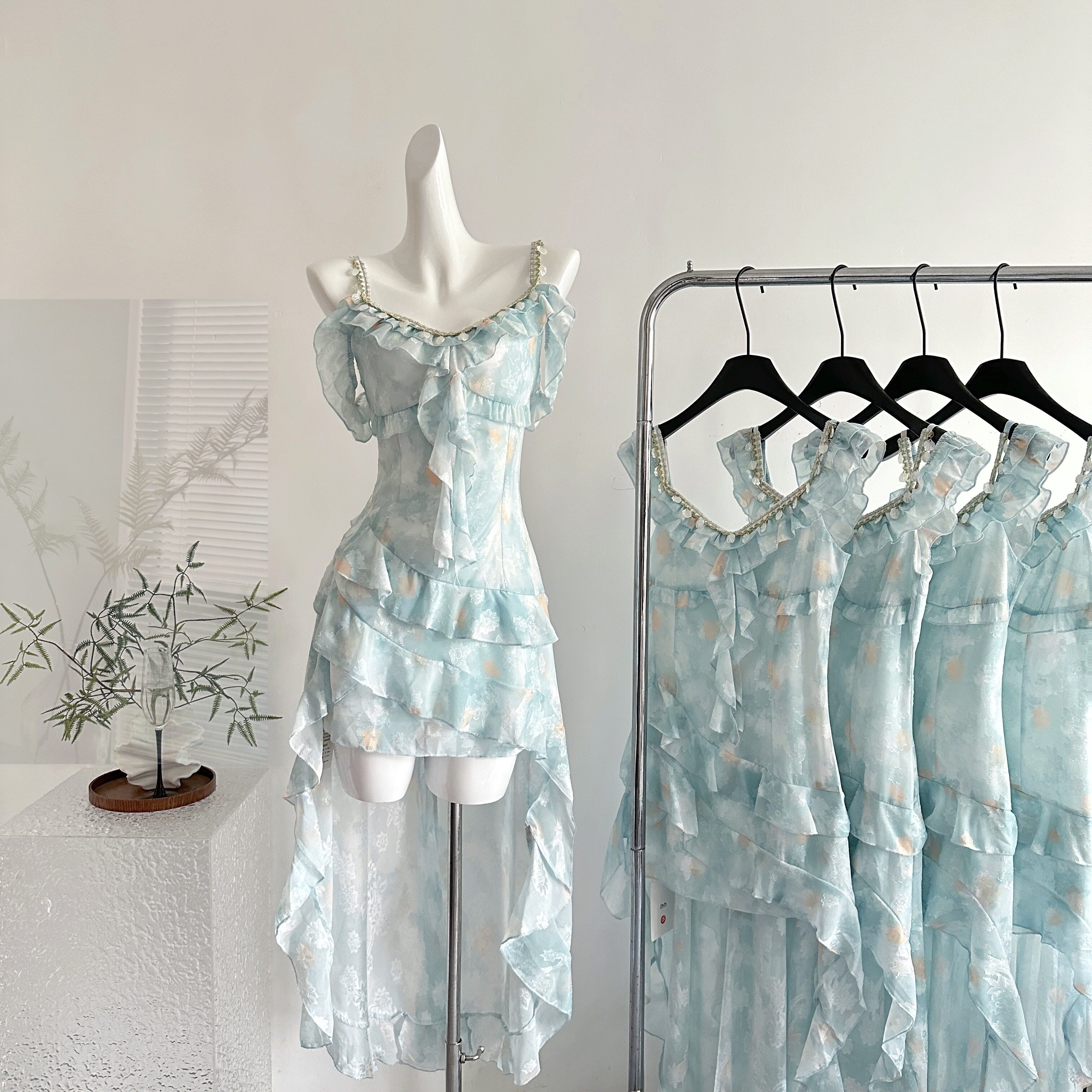 Youni Homemade Sea of Twilight Summer Sweet Little Fresh Floral Slimming Spice Dress