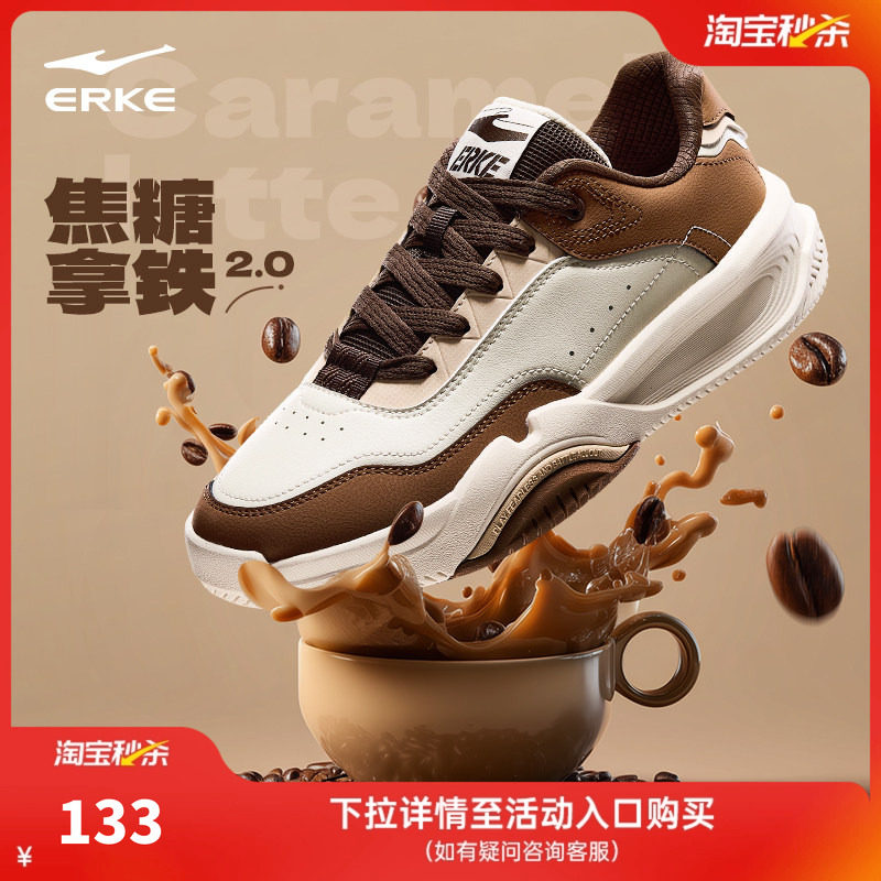 Caramel latte, Hongxing Erke board shoes, men's shoes, platform and versatile, new winter casual shoes, youth sports shoes