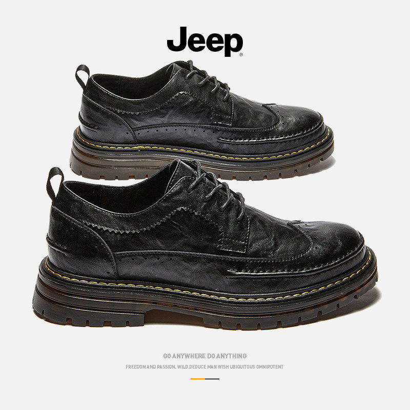 Jeep jeep leather shoes men's wedding casual 2026 new all-black official British formal business dad derby shoes
