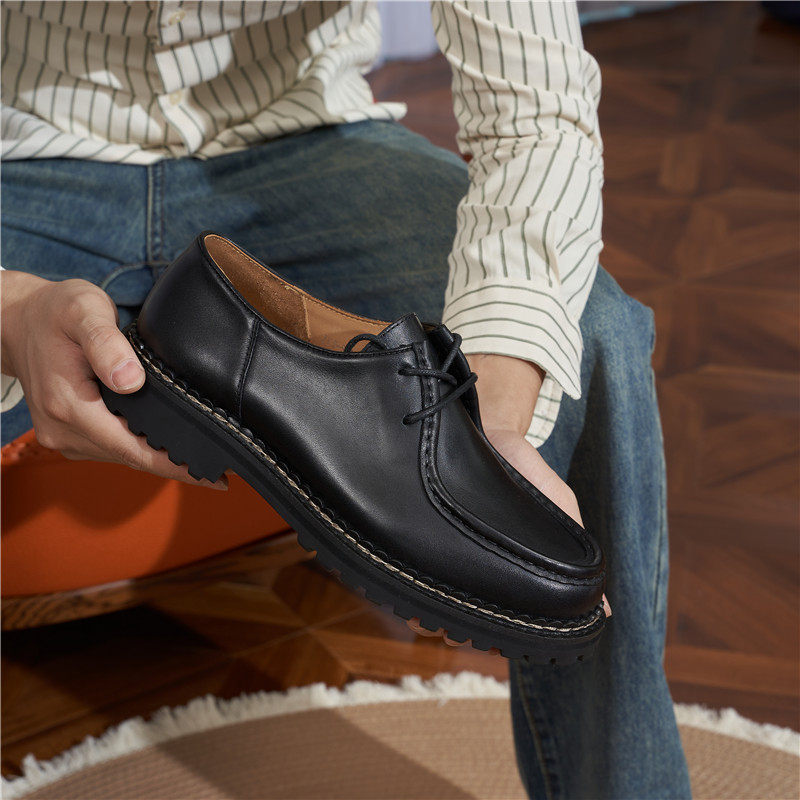 Pleated toe derby shoes men's black leather shoes cleanfit high-end couple casual commuter leather shoes