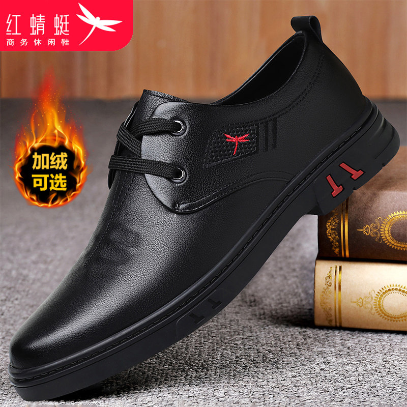 Genuine Red Dragonfly Men's Shoes 2025 New Cowhide Genuine Leather Business Casual Leather Shoes Men's Autumn and Winter Plush Cotton Shoes