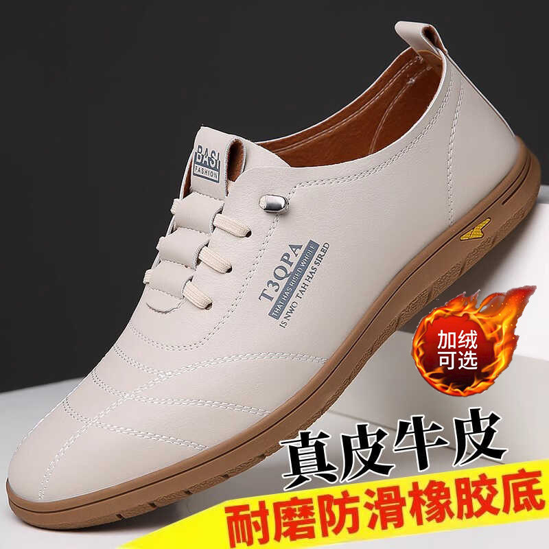 Italian leather soft sole men's leather shoes 2025 new winter casual non-slip fleece anti-odor men's shoes