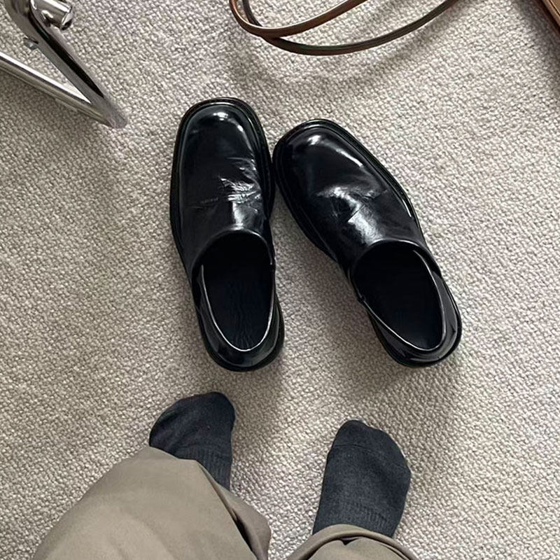 Leather shoes men's increase in height old money retro pedal square toe derby leather shoes British style commuting casual loafers for men