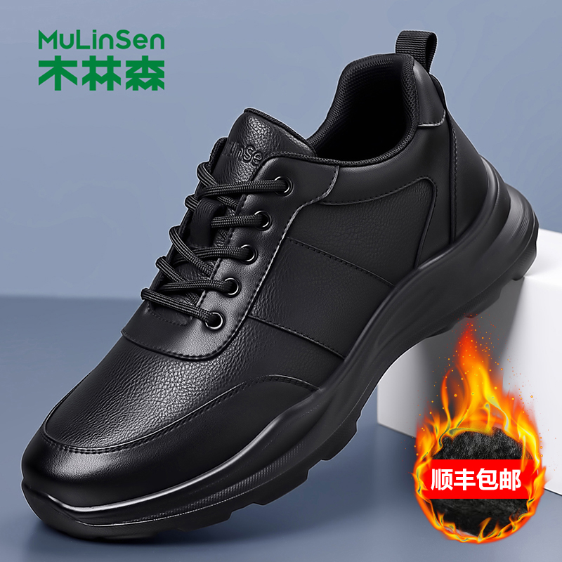 Mulinsen men's shoes 2025 winter new fashion padded sports casual leather shoes men's trend genuine leather little black shoes men
