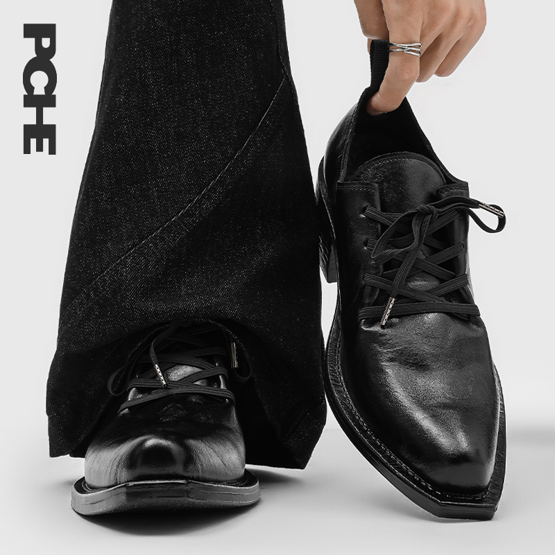 Park Chen PUCH niche headscarf wizard shoes wrinkled catwalk trendy pointed high-heeled leather shoes thick-soled derby shoes