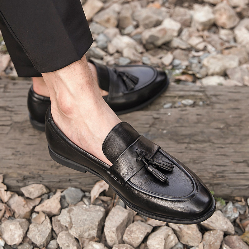 Men's shoes, genuine leather fringed small leather shoes, men's autumn and winter casual British leather shoes, men's Korean version of the trend, one-foot pedal bean shoes