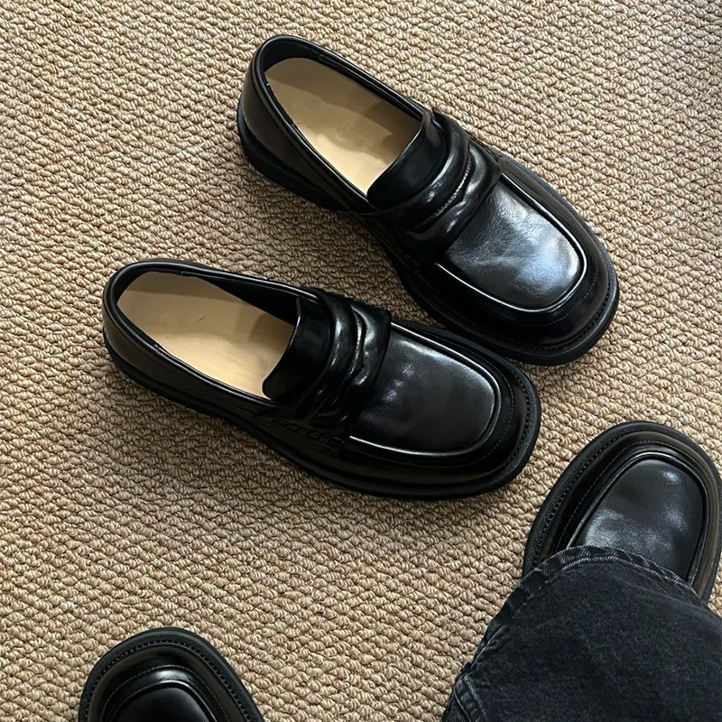 cleanfit derby shoes black square scalp shoes men's loafers thick soles increase the height of British style commuter men's shoes